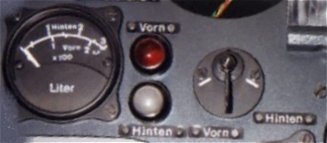 and rear ("Hinten") tanks (230 and 300l, respectively) using the tank selector switch located to its