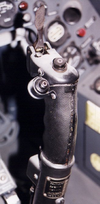 The cannon trigger button located on the top of the stick was protected by a safety lever which swung forward.