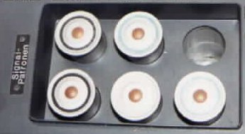 Signal flares ("Signal Patronen") were used as a form of IFF ("Identification-Friend-or-Foe"). Colors-of-the-day were established beforehand, and pilots would fire the flares before landing, especially at night or in inclement weather. The flares were fired through a hole in the starboard side of the fuselage. |